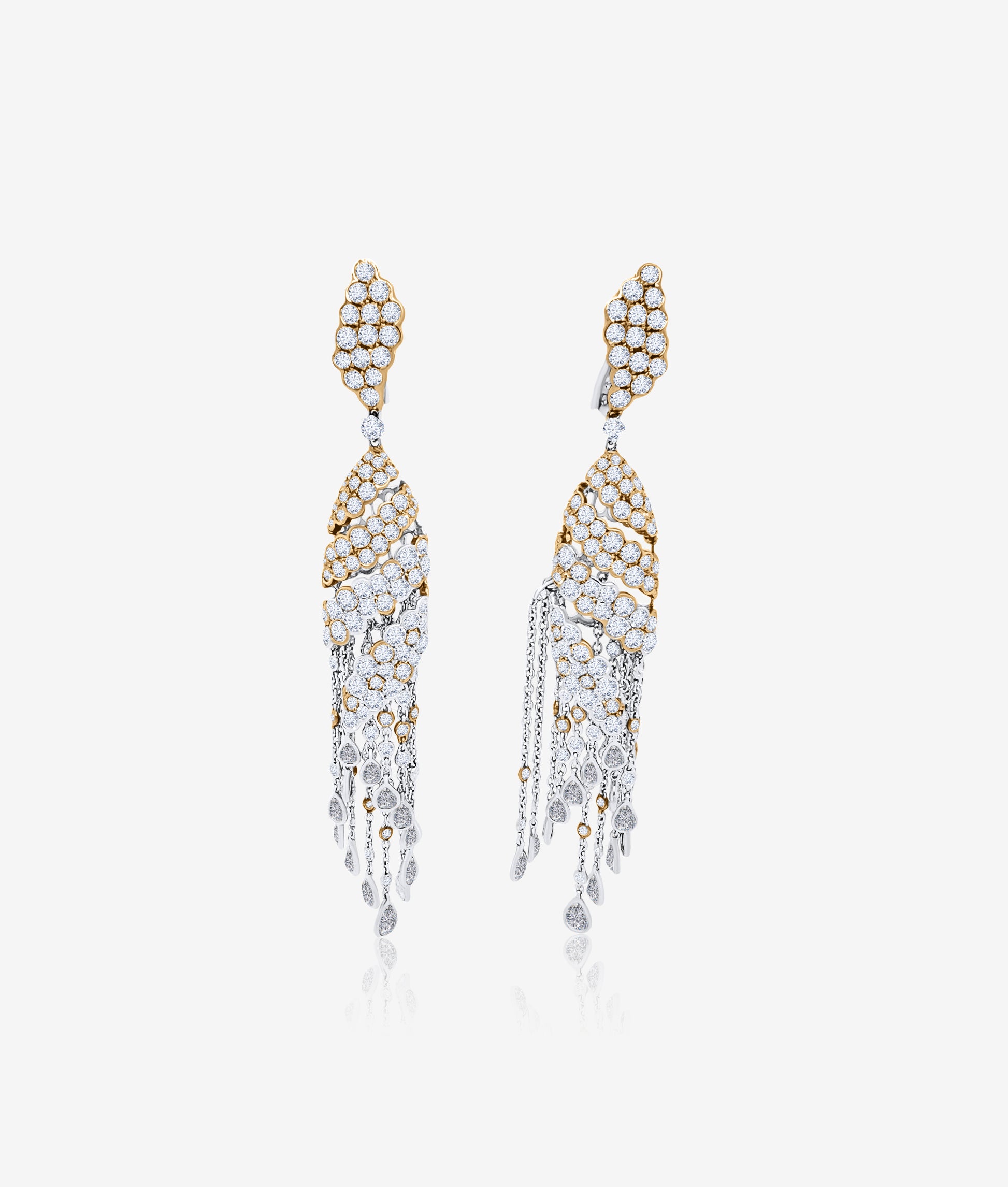 Waterfall earrings in 18K white and yellow gold with cascading yellow and white diamonds.