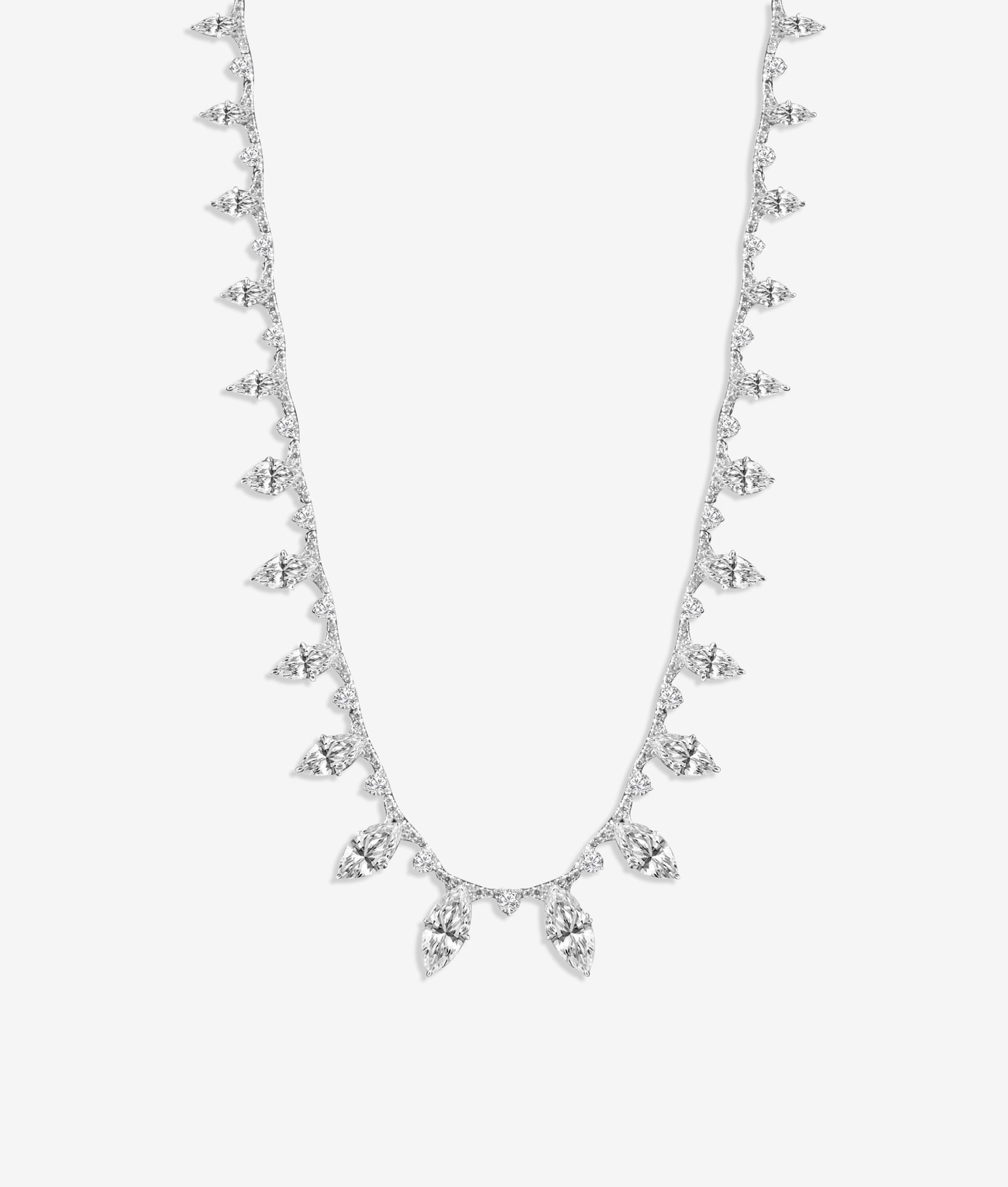 Outstanding marquis diamond necklace expertly crafted of flexible links set with round diamonds.