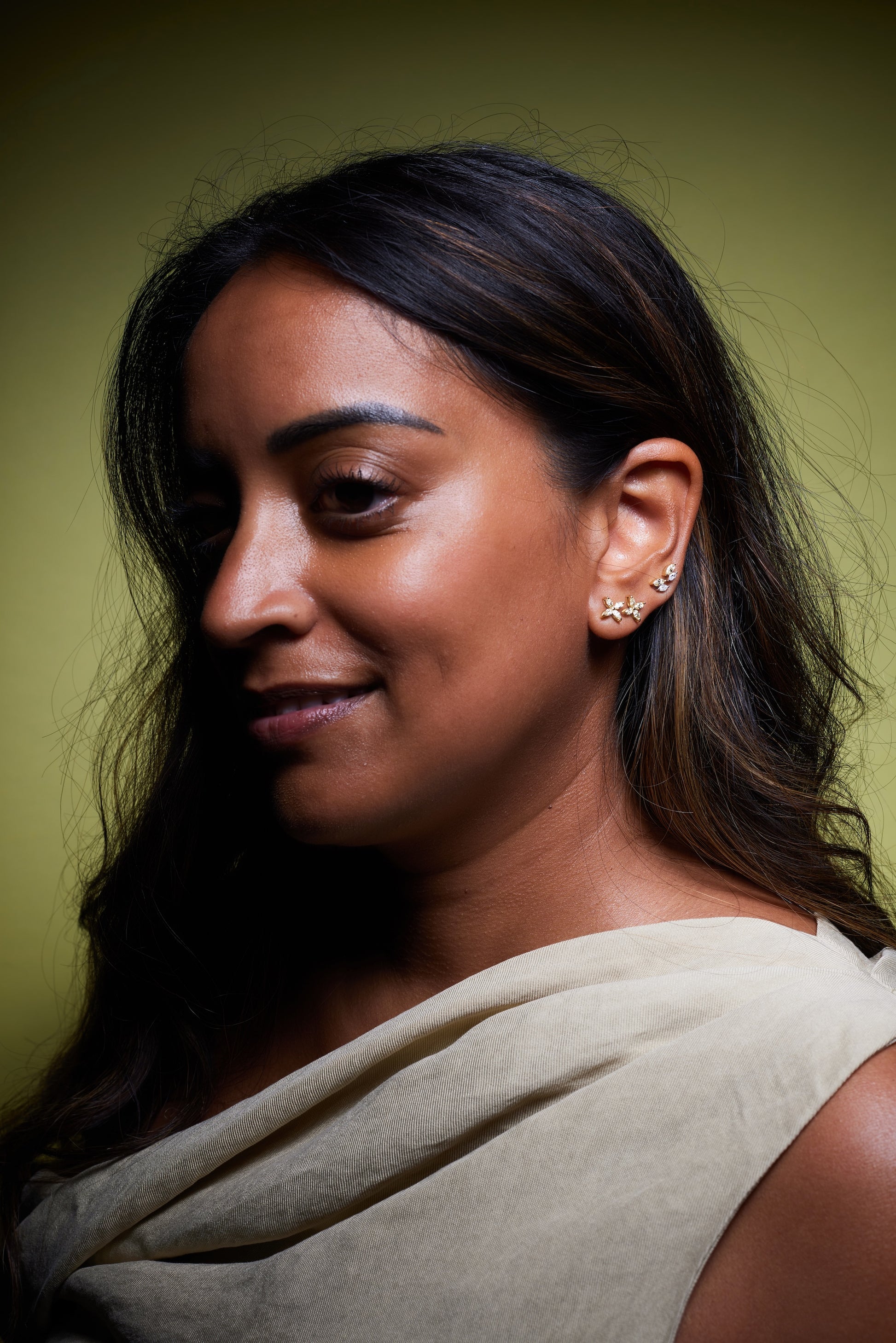 A pair of earring studs crafted in 18K yellow gold, set with yellow marquis shaped diamonds in the shape of a star.